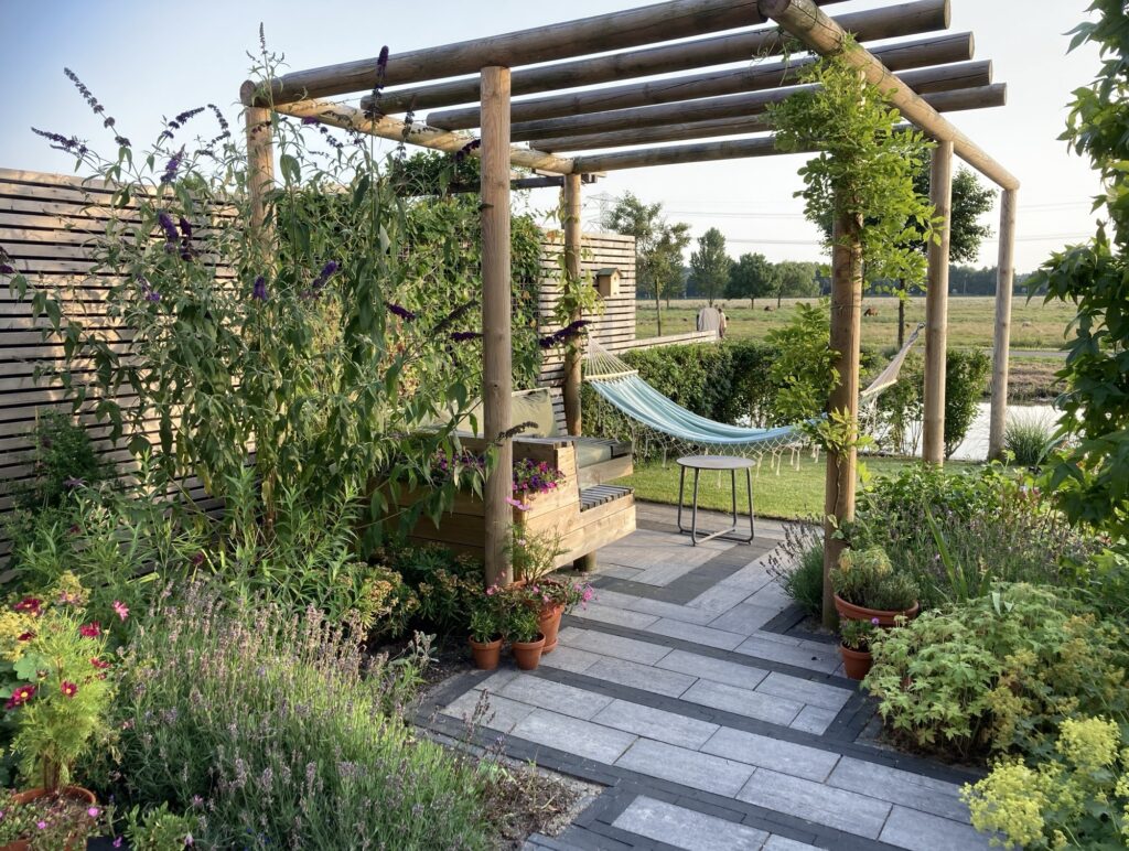 Je wilt vanzelf naar deze ruimte lopen — precies het effect dat een goed tuinontwerp met kamers kan hebben.
